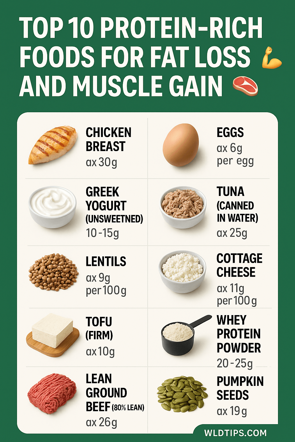 🏆 Top 10 Protein-Rich Foods for Fat Loss and Muscle Gain